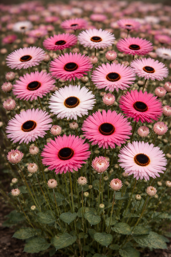 Las plantas compactas y de floración profusa crean un campo de color uniforme y atractivo que llama la atención de inmediato.