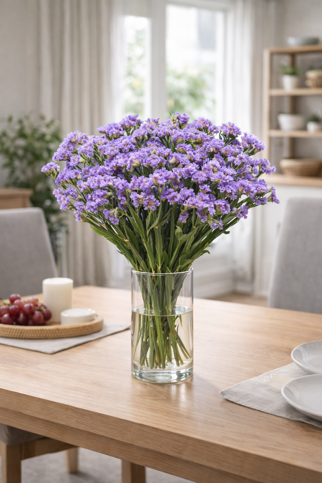 Limonium sinuatum QIS® 'Lavanda' combina calidad profesional, flores duraderas y un color elegante, lo que la convierte en una planta indispensable para jardines de aficionados, floristerías profesionales y arreglos florales. Sus flores de color lavanda aportan suavidad, estilo y versatilidad a cualquier jardín, ramo o arreglo.