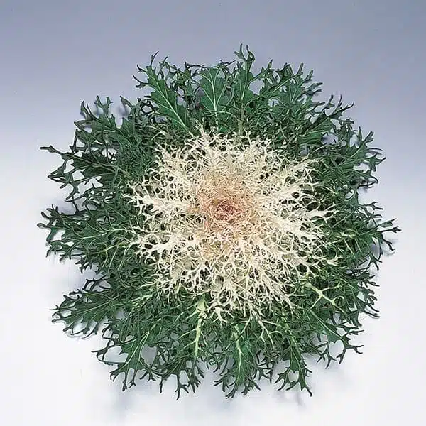 Bisannuelle, cultivée comme annuelle. Chou ornemental aux feuilles finement découpées, plumeuses et colorées.