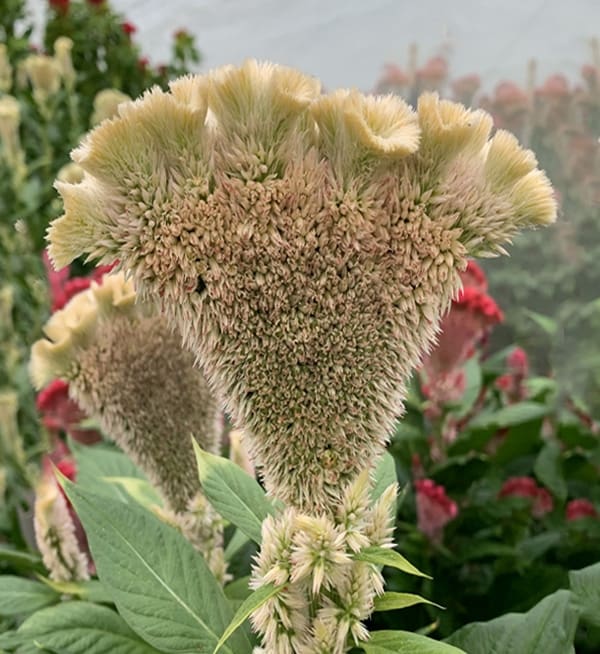 La Célosie Martine Saumon produit des crêtes de belle forme avec une couleur rose saumon très subtile.