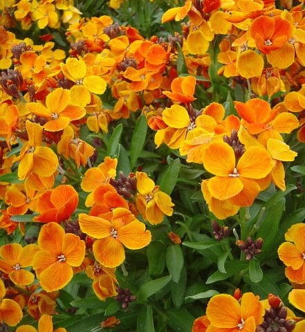 Le Cheiranthus cheiri, aussi appelé giroflée, est une bisannuelle rustique ou une vivace de courte durée aux fleurs parfumées et éclatantes. Cette variété atteint 45 à 50 cm de haut et forme des épis de fleurs denses.