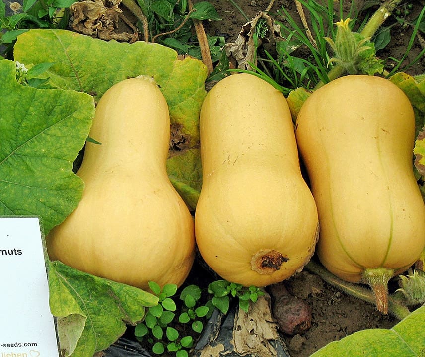 Petite courge butternut très compacte. Ses fruits ne pèsent que 500 à 1 000 grammes et, grâce à leur chair ferme, sont parfaitement proportionnés.