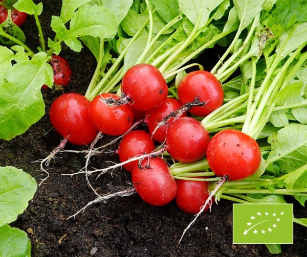 Le radis bio Raphanus sativus Raxe est une variété de radis de haute qualité, issue de l'agriculture biologique, qui se distingue par sa forme, son goût et sa fiabilité. Ce radis polyvalent, cultivé toute l'année, est idéal pour les jardiniers qui souhaitent profiter de radis frais et croquants de leur propre jardin pendant une grande partie de la saison. Avec sa belle forme ronde, sa couleur rouge carmin et sa texture tendre, cette variété est un véritable atout pour tout potager.