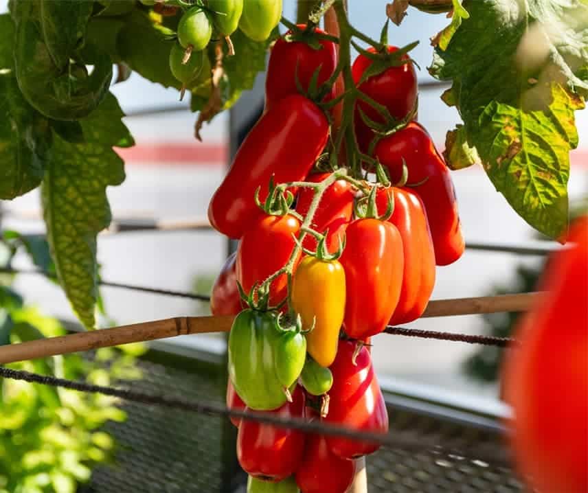 Les plants de San Marzano 2 sont vigoureux et robustes, avec une croissance rapide et une bonne productivité. Ils développent de longues grappes de fruits à maturation uniforme et produisent de façon constante tout au long de la saison. Leur vitalité les rend très résistants aux variations climatiques.