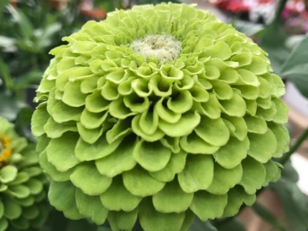 Zinnia Queeny Lime est une plante annuelle facile à cultiver avec des plantes vigoureuses et saines couvertes de belles fleurs de 5 à 10 cm (2 à 4 pouces).