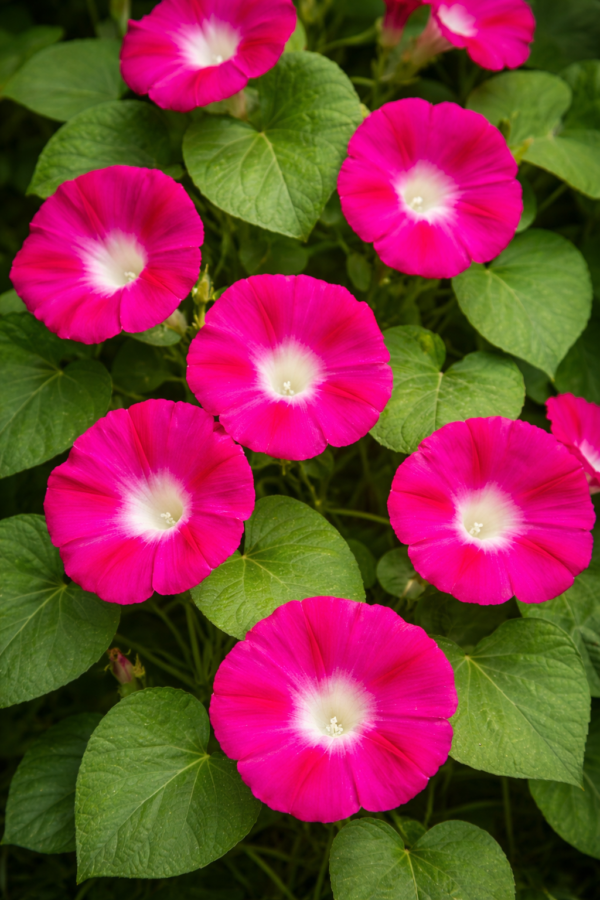 De Ipomoea nil ‘Scarlet O’Hara’ is een krachtige en sierlijke eenjarige klimplant die opvalt door haar diep scharlakenrode bloemen met een helder wit hart. Deze klassieke winde is al jarenlang geliefd bij tuinliefhebbers vanwege haar rijke bloei, snelle groei en opvallende kleurcontrast. De bloemkleur is intens en warm, waardoor ‘Scarlet O’Hara’ een echte blikvanger vormt op pergola’s, hekwerken, balkons en schuttingen.