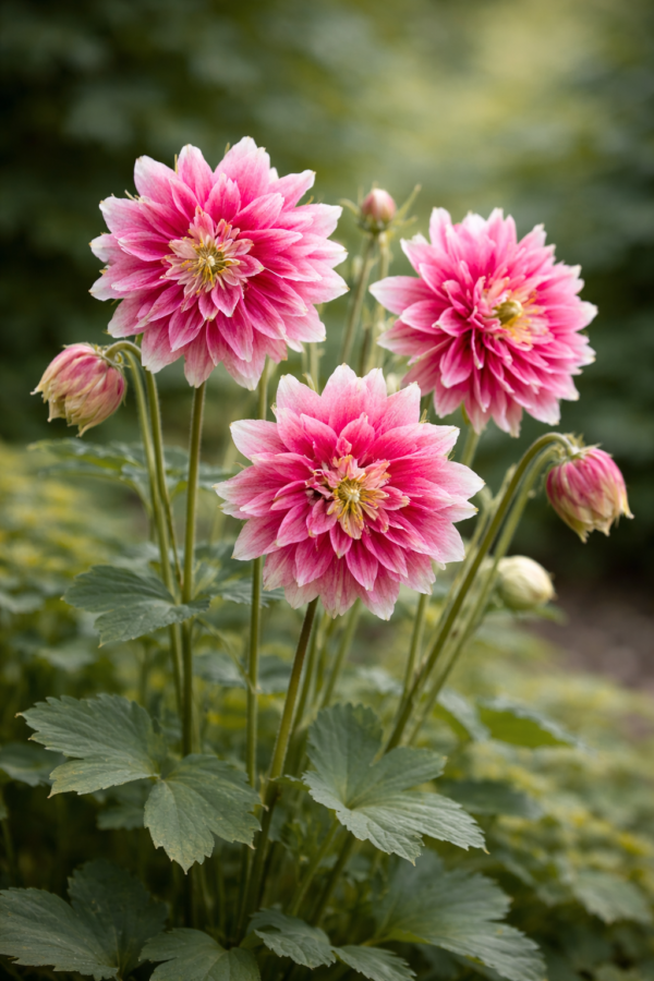 Con i suoi fiori doppi e pieni e la delicata struttura delle foglie, l'Aquilegia vulgaris Nora Barlow BIO aggiunge altezza, consistenza ed eleganza a qualsiasi bordura. Il mix di colori crea un effetto romantico e lussuoso, mentre la coltivazione biologica la rende una scelta ecologica per giardini ricchi di biodiversità.