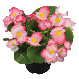 Begonia Semperflorens. Compagna della vita notturna con le sue foglie verdi.