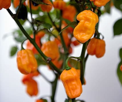 La pianta Habanero, altrimenti tipica, cresce normalmente e produce frutti trapezoidali di colore giallo-arancio.