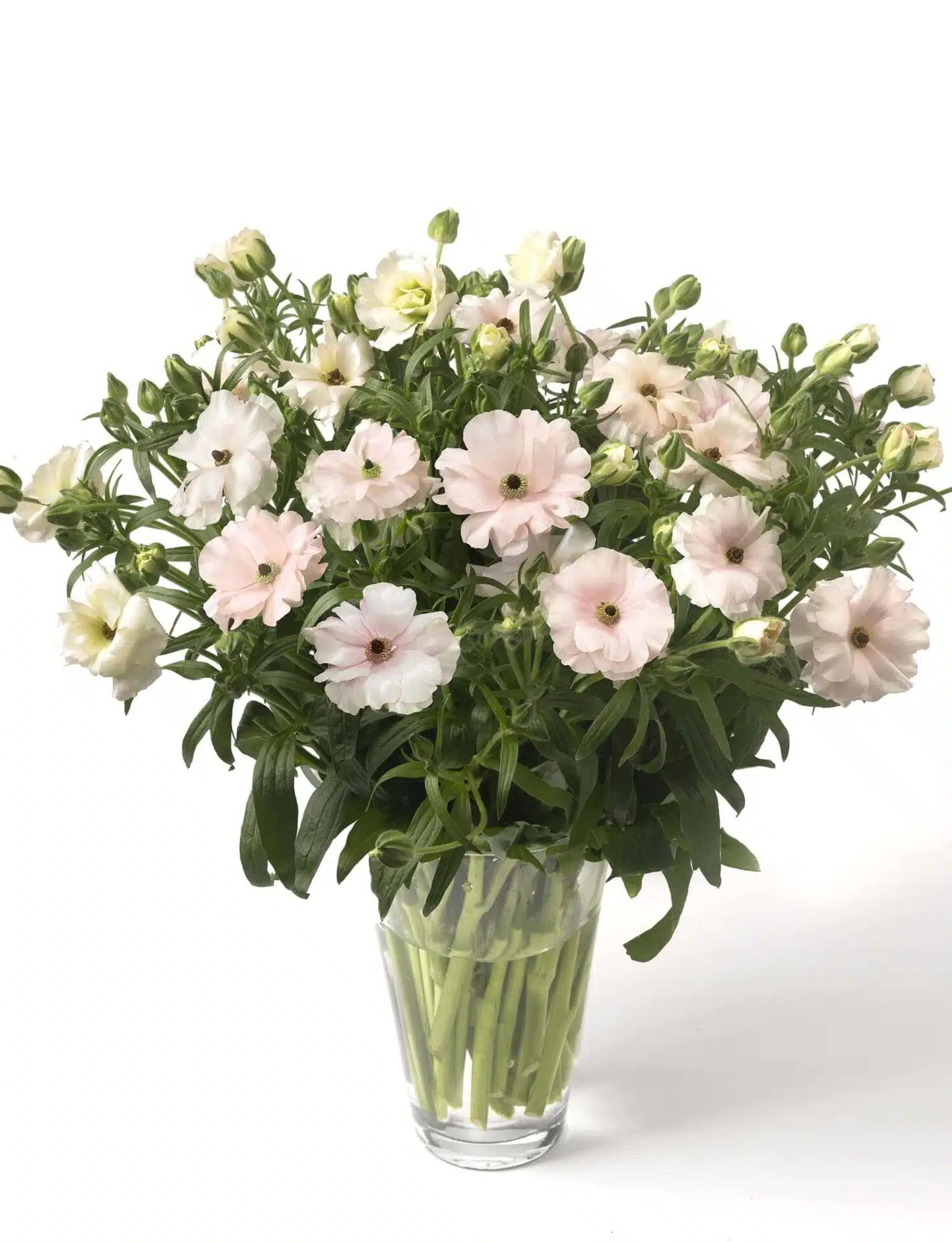 Ranunculus Butterfly™ Ariadne® è un fiore reciso rosa chiaro noto per la sua lunga durata in vaso. Ciò che rende unica questa varietà di Ranunculus è il suo singolo strato di petali.