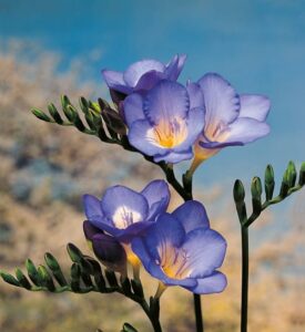 Freesia x hybrida : nota per la sua gamma di colori e il profumo intenso, ideale per composizioni floreali. Annuale o perenne.