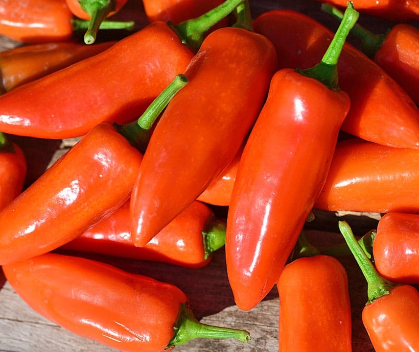 Frutti eretti che cambiano colore dal verde al rosso-arancio, appuntiti e a forma di jalapeño, lunghi circa 8 cm. Delicati con un leggero sentore piccante.