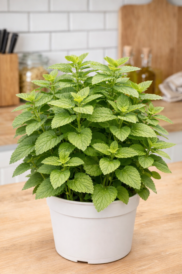 De plant zelf behoort tot de familie van de lipbloemen (Lamiaceae), heeft hartvormige donkergroene bladeren en kan tot 70 cm hoog groeien. Het karakteristieke citroenachtige aroma maakt het kruid geliefd voor zowel culinaire toepassingen als kruidengeneeskunde.