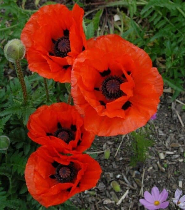 Oosterse klaprozen zorgen voor een vrolijke aanblik met enorme, satijnachtige bloemen in het late voorjaar en de vroege zomer. De planten vormen een lage pol van grove, behaarde bladeren en gaan meestal in rust, waarbij ze in de late zomer volledig verdwijnen. Deze variëteit heeft vurige scharlakenrode bloemen met een zwarte vlek.