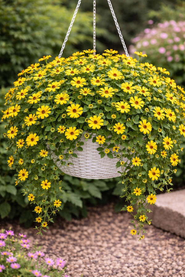 Door de lage groei en felle bloemen creëert Sanvitalia procumbens een levendige, zomerse uitstraling in elke tuin.