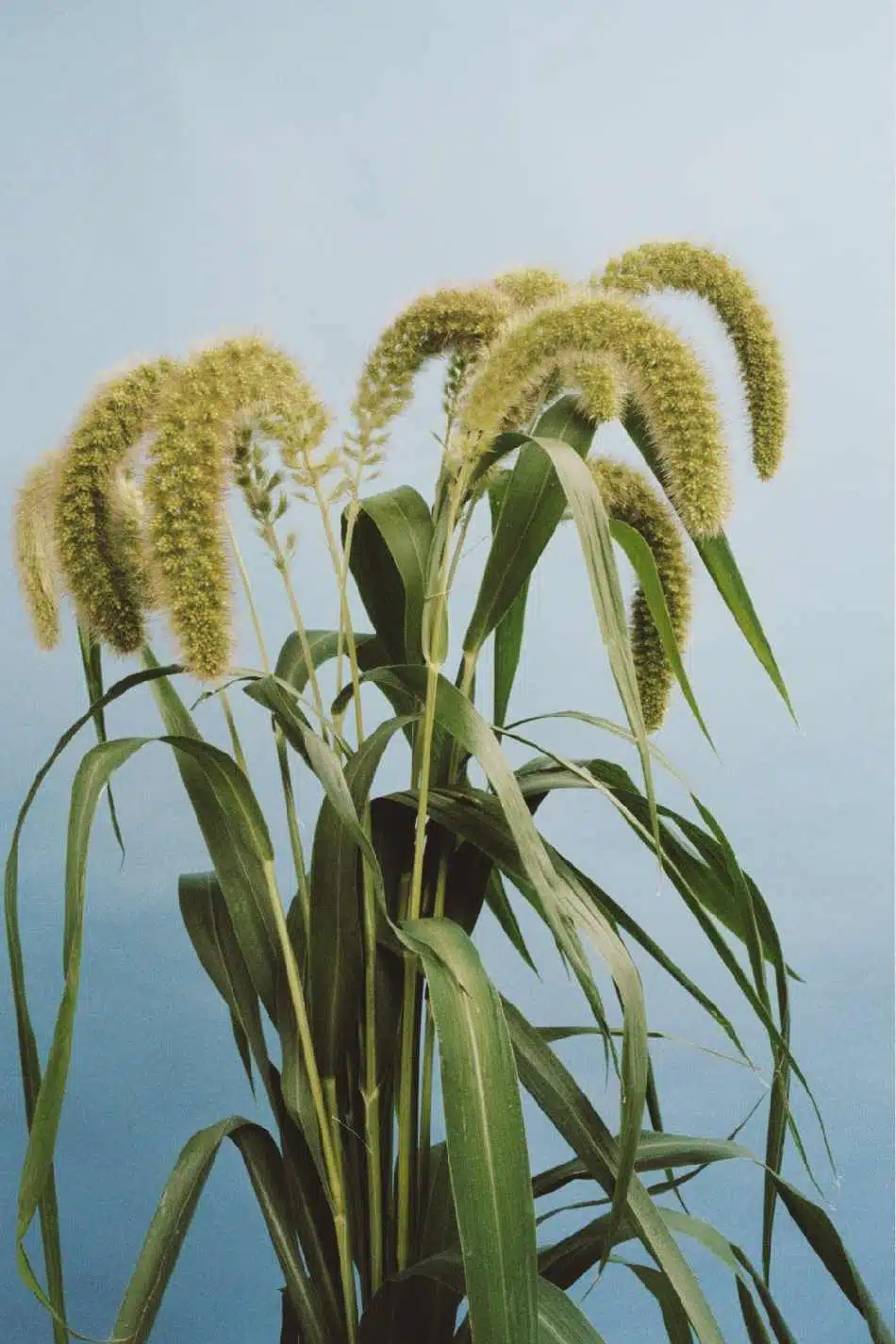 De licht hangende, dikke gierstaren hebben aanvankelijk een lichtgroene kleur, mooi voor boeketten.