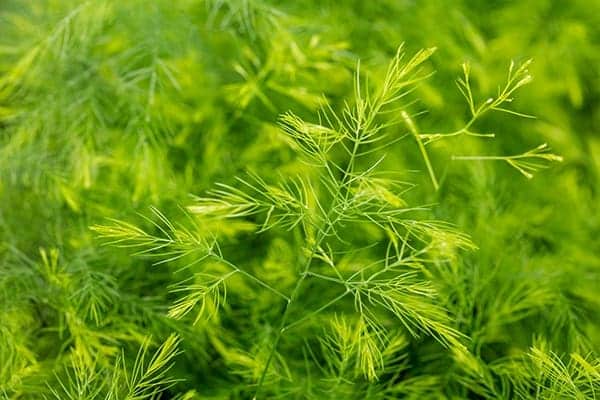 Denna yviga, välförgrenade sparris har små, mjuka, trådliknande blad som växer som små kvastar på stjälkarna.