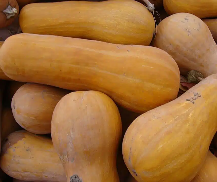 Butternutpumpa med mycket mörkt fruktkött.