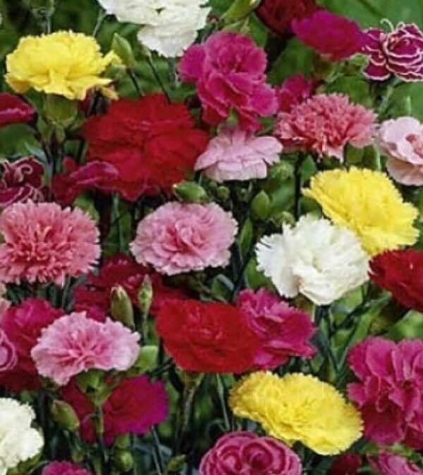 Fransade, 4-5 cm stora, dubbla blommor med en liten andel enstaka blommor. En blandning av färgglada blommor som utstrålar en intensivt kryddig och distinkt doft.