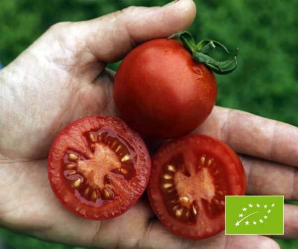 Resistente, robuuste, kleine rode tomaat van ongeveer 50 gram.