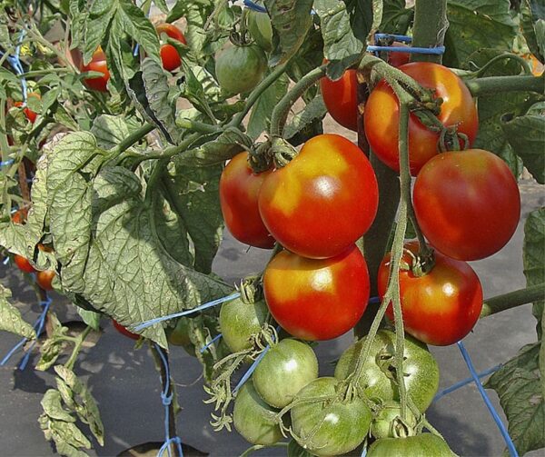 Stupice draagt zeer vroege, rode, ronde vruchten van ongeveer 5 cm groot en heeft aardappelbladeren.